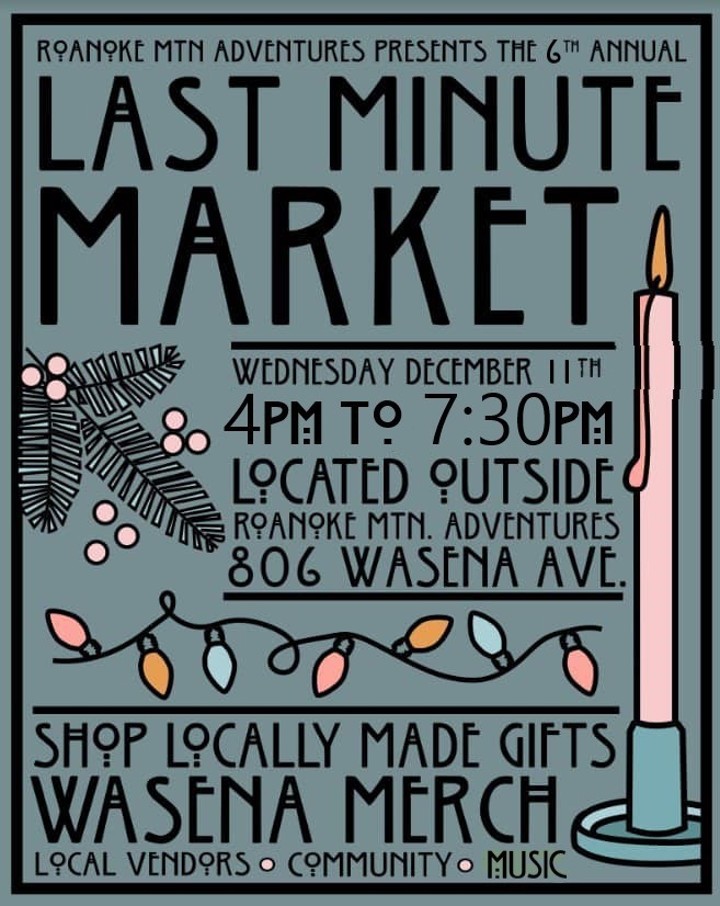 It’s a Wasena holiday tradition! See old friends and meet new ones at the 6th Annual Last Minute Market! We are bringing back all your favorite local food, craft, and art vendors and adding NEW ones to make this the biggest and best market yet!